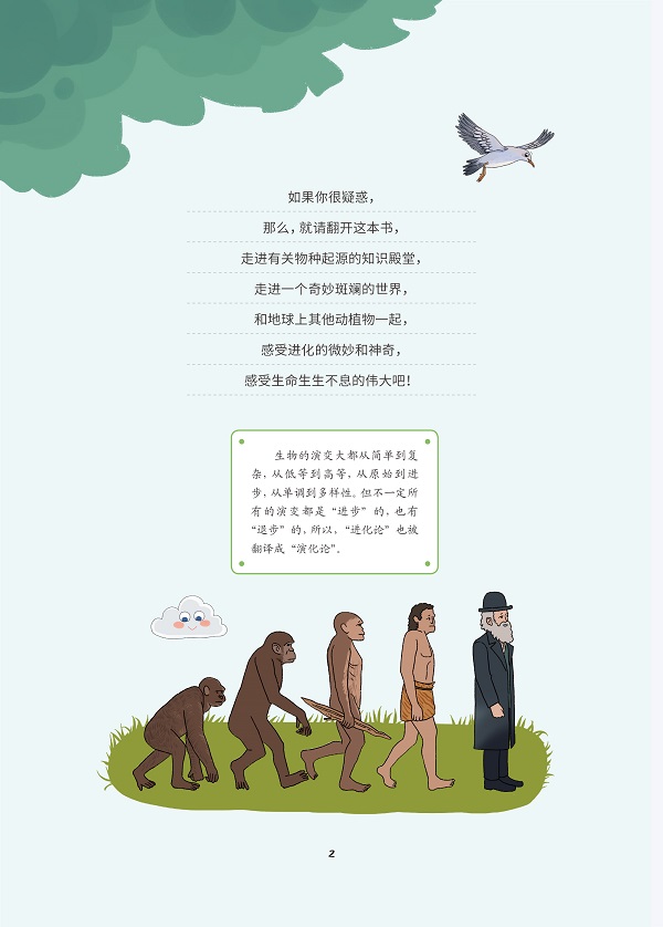 通俗易懂、言简意明的文字,贴近孩子的阅读水平与语言习惯;呆萌可爱、幽默风趣的漫画,给孩子营造轻松欢乐的阅读氛围。 对《物种起源》进行深入浅出的讲解,内容涉及变异、自然选择、生存斗争、本能、遗传、进化等,帮助孩子对经典进行解读。 小16开,锁线全彩精装,完全展开,手拿或平铺,阅读超级顺畅。 本书轻松美好地诠释了达尔文巨著《物种起源》的核心知识点。小读者通过阅读此书,可以了解人类和猴子之间的关系、动物的长相为什么各式各样、动物有哪些本能、什么是遗传和变异、不同物种之间有怎样的生存竞争、自然选择在万物演化过程中起到的作用、大陆漂移对生物进化的影响等,由此推开科学的大门,感受生物进化的奇迹,使自己视野和胸襟更为开阔。