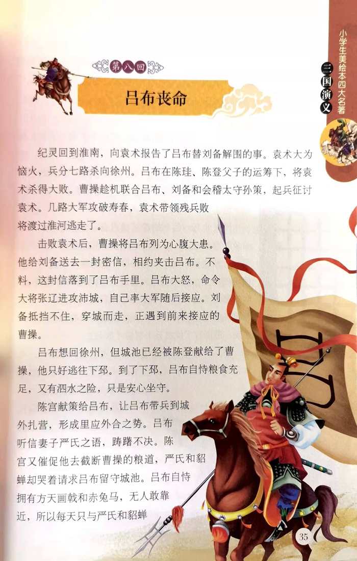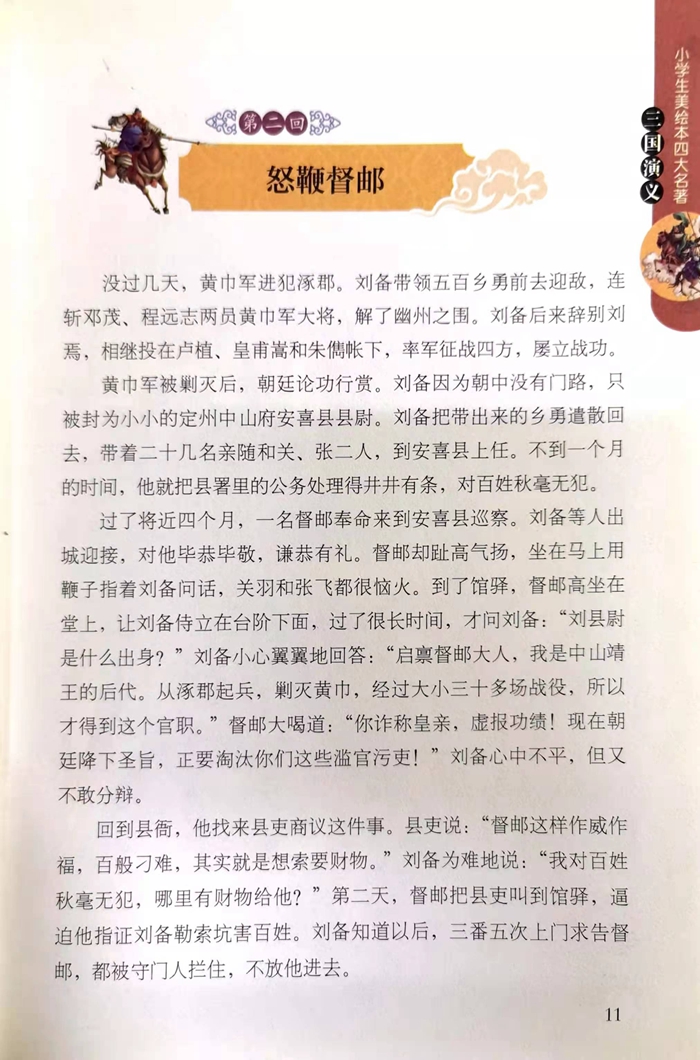 《三国演义》是中国四大古典名著之一,小说描写了从东汉末年到西晋初年间近百年的历史变迁,有大家耳熟能详的经典故事:桃园结义、青梅煮酒、三顾茅庐、草船借箭、三气周瑜、七擒孟获……有气势磅礴的战争场面,有叱咤风云的英雄人物,其中诸葛亮、周瑜、关羽、张飞、曹操、刘备等众多英雄人物的故事尤为小朋友所喜爱。本书是有精美彩图的美绘本,个别生僻字有注音,是特别献给小学生的古典名著入门读本。