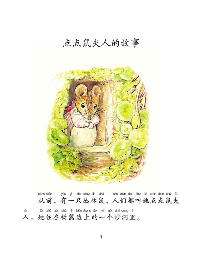 《点点鼠夫人的故事》收录了《弗洛普茜家的小兔子》《点点鼠夫人的故事》两个小故事。《点点鼠夫人的故事》讲述了一只有洁癖的老鼠夫人,与来到她家里的“不速之客”,特别是与她的邻居蛤蟆杰克逊先生相处的故事。《弗洛普茜家的小兔子》讲述的是弗洛普茜小姐和本杰明先生结婚后,生了六只小兔子。为了找吃的,他们误食了有催眠作用的莴苣。当他们处在危险境地的时候,点点鼠夫人帮助了他们的故事。