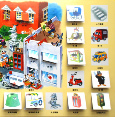 在内容上,它更是以培养孩子的想象思维能力为主,进行“翻翻页”的设计与内容的编排。每册书都将宝宝需要认知的事物整齐的排放在书中大场景的四周。宝宝通过认知完这些单个小事物后,需要在书中的大场景里找找他们都藏在哪儿。有些小鱼会躲在珊瑚后面,还有些奇妙的鱼会躲在水草里……,这些奇妙的景观,都需要孩子自己来寻找发现。孩子们也会因为这些小小的发现感到无比惊喜,他们总希望探索下个岩石或者沙滩下又藏着什么小东西……。因此,这样的阅读形式不但能给孩子带来对事物的基本认知,而且它也无形中培养着孩子的想象力与思维能力。