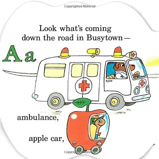 Illustrated in full color. This car-and- truck-filled alphabet extravaganzathat starts with an ambulance and ends with a zippercar, is shaped like LowlyWorm's applemobile.