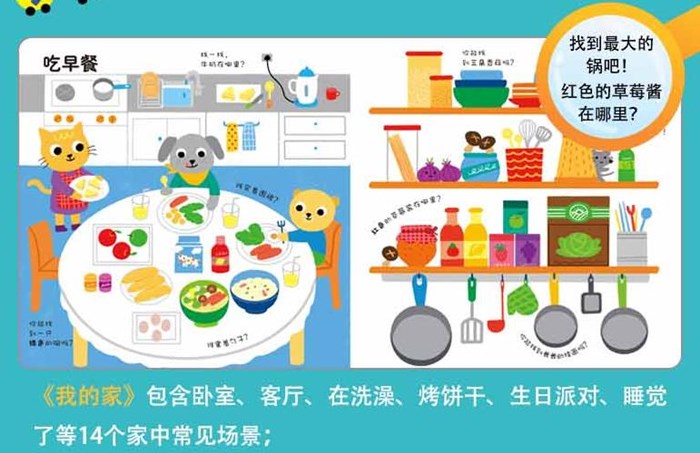 这是一套合适0-4岁小朋友阅读的专注力养成启蒙认知游戏书,分别以宝宝最熟悉的动物、城市、家庭和童话为主题,共四册:《可爱的动物》《热闹的城市》《我的家》《童话王国》。每页设计亲子互动问题,让小朋友们动脑想一想,动手找一找、数一数。专为0-4岁宝宝设计的专注力认知游戏书;培养专注力和观察力,同时锻炼手眼协调力、逻辑思维力和空间辨识力;认知大小、颜色、数字、方位等知识;每册包含20余个孩子熟悉的生活场景,内容丰富,每翻一页都能体验新的惊喜;圆角厚纸板材质,小手撕不烂,安心享受快乐亲子时光。《可爱的动物》包含小鸟、蝴蝶、小兔子、猴子、小蜜蜂、猫头鹰等24个与动物有关的场景。