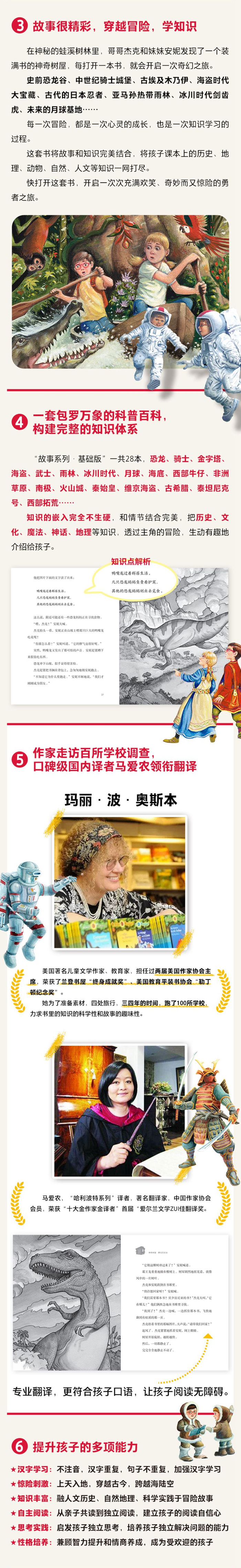 《神奇树屋27·宴会奇遇记》是“神奇树屋”故事系列中的一册适合5-7岁孩子阅读的桥梁书。这一册中,安妮和杰克通过神奇树屋,穿越到了1621年的美国普利茅斯,闯进了“五月花号”清教徒们聚居的村庄,找到了仙女摩根让他们找的 “社区魔法”。书中通过安妮和杰克的视角,展开了一幅美国清教徒勤劳生活的历史画卷,说明了感恩节的历史渊源以及其蕴含的“珍爱劳动、互帮互助、懂得感恩”的寓意。书后还设计有“杰克和安妮给你讲人文小知识”板块,介绍了美国的历史和发展,以及普利茅斯殖民地上发生的几件趣事。