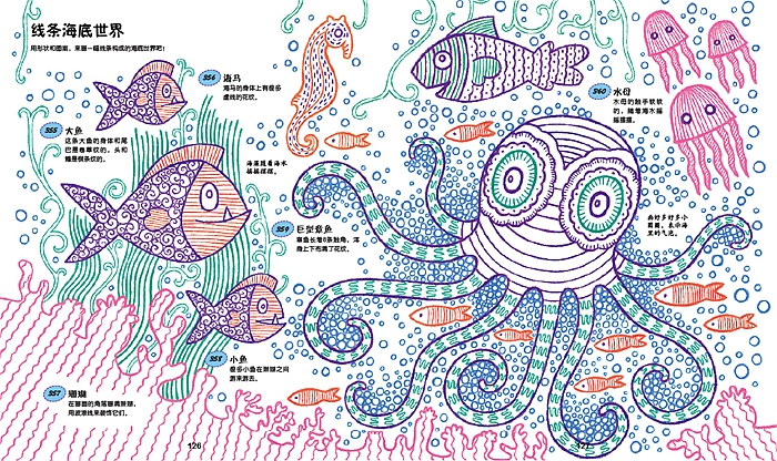 其中介绍的各种手绘技法:勾线、涂色、拓印、喷洒、拼贴……会让绘画过程变得精彩有趣,玩起来不仅锻炼了动手能力,还有助培养观察能力哦!