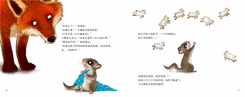 于是,在小动物们的帮助下,小睡鼠尝试了各种入睡方法,数羊、听故事、倒挂金钩睡……可是还是睡不着。