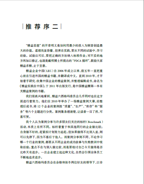 本书以一则节奏明快的精彩寓言,解释如何结合时下最主要的的两种流程改进方法——精益管理和六西格玛——来大幅度改善品质并缩短周期。而且,它细述了在导入六西格玛方案前要先推行精益管理的原因。 在这里,作者让读者先考虑两个问题,第一,能将每百万次误差数维持在3上下,符合六西格玛的品质标准就能成为一流企业吗?第二,如果你晚了两个星期的时间才把零缺陷的产品送一客户手上,你觉得你的客户是欣然接受,还是气得跺脚 ?精益六西格玛就是要让你兼顾品质与速度,在执行六西格玛计划前先去除干扰速度的人事及其所造成的浪费,把产品和服务做得又快又好。 3位精于精益管理与六西格玛解决方案的资深顾问从人性出发,细致刻画了人与技术,人与体制和磨合和冲突,助你轻松兼顾品质与效率,打造更多*企业。