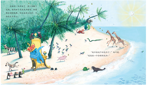 本书为儿童绘本故事(无电子书目)。有一只蓝小怪,他喜欢所有新的东西。有一天,他甚至厌倦“旧”的家人,带着很多钱离家出走了。他给自己买了新的车子、新的游乐园、新的小岛……但是,他依然觉得不开心。最后,他厌倦了“旧”的太阳,一怒之下把太阳吞了……这是珍妮·威利斯和珍妮·斯蒙德继《世界上第一只绿小怪》后的另一部合作作品。现代社会,每个人都喜欢一切新的东西。作者用夸张化的艺术手法去演绎这样的现象。结局用一种轻松的、儿童性的方式让这场闹剧以温暖结尾,并告诉大家:再多的金钱也无法买到爱你的家人。