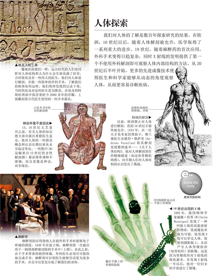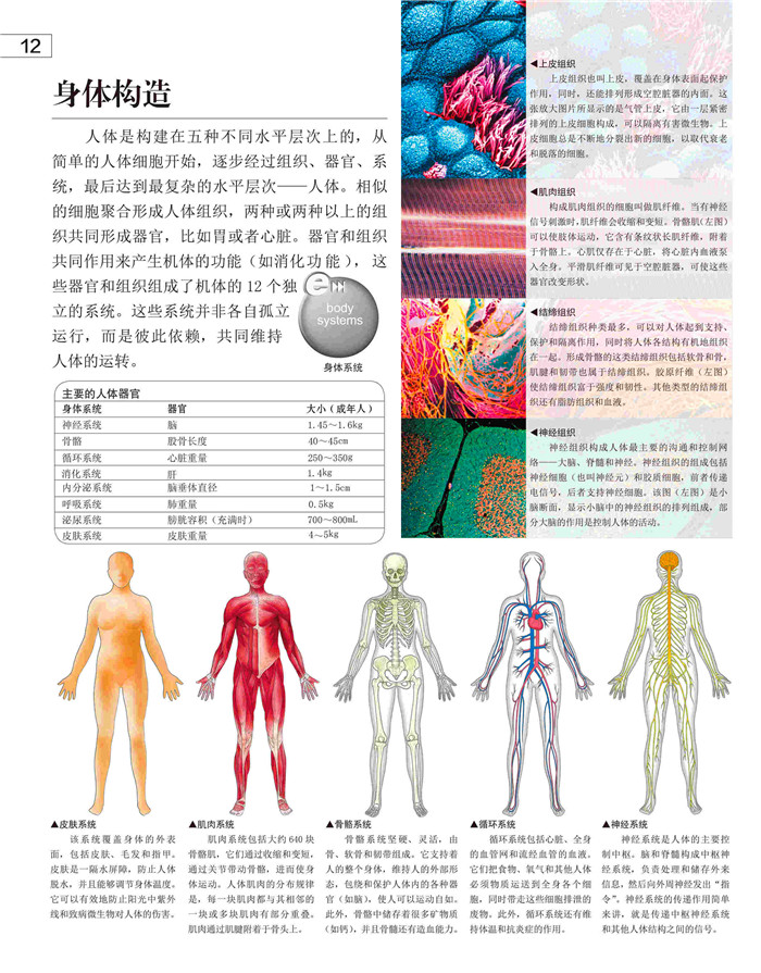 本书通过大量生动有趣的图片和通俗易懂的文字介绍了人体组成单元、人体结构、骨骼、骨与骨折、肌肉、外表皮、眼睛与视觉、听觉与身体平衡、味觉与嗅觉、神经与神经元、脊柱、控制中枢、脑功能、化学信息、循环系统等到科普知识。