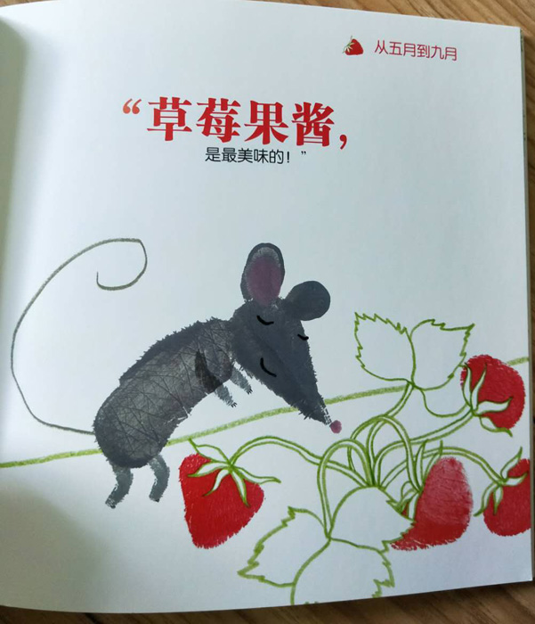 这本绘本教宝宝们认识水果。亨利和丽丽,这两只小老鼠在果园里采樱桃、桃子、李子……在花园里采葡萄、猕猴桃……也从市场上买香蕉、椰子。品尝每种水果的*月份已经在书中清楚地标明,只需要在合适的季节享受鲜美的水果或者准备美味的果酱就行啦!亨利总是那么搞笑,小读者们会被他做的蠢事和贪吃的样子逗得哈哈大笑。书中大部分富有魅力的插画都是由手印画构成的。画面色彩使用“水果色”,使整部作品非常清新自然。在画册最后有作者教手印画的方法步骤,孩子们可以通过自己绘制多种水果而获得乐趣。让孩子们放手去涂鸦吧!