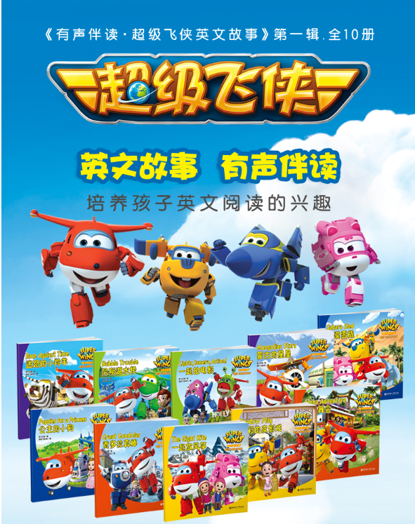 《有声伴读·超级飞侠英文故事(第1辑)》全套共10册,涵盖“超级飞侠”原版动画片第1季的10个小故事。绘本采用纯正美式儿童英语,全套经美国Lexile®测评,适合3-7岁儿童英语启蒙,同步美国同龄孩子的阅读水平!