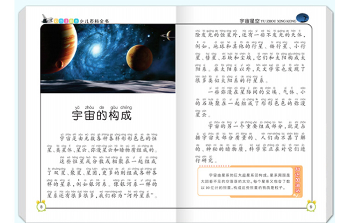 内容提要:本套丛书包括8个小册子,每册2个印张,分别是《宇宙星空》《地球万象》《动物王国》《神奇自然》《奥秘探索》《民俗文化》《军事体育》《名胜典故》。涵盖了天文、自然、动物、文化、科技等各个领域,内容丰富,能充分满足少年儿童的好奇心和求知欲。语言生动活泼,通俗易懂。精选数百张精美图片,能在视觉上激发孩子的探索兴趣,使阅读变成真正的乐趣。本套丛书按照循序渐进的规律,把纷繁的知识和无穷的道理与少年儿童熟悉的事物联系起来,使他们由近及远,由表及里,从已知到未知,逐渐进入人类知识的海洋。