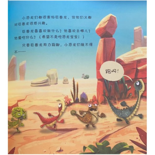 角色简介: 1.勇敢的洛奇,他是一只副栉龙,别看他年纪不大却是个十足的“硬汉”。洛奇特别的勇敢,不过有时也有粗心大意的毛病。 2.胆小的比尔,他是一只腕龙。很多东西都会让比尔害怕,但是在关键时刻也会变得勇敢。比尔喜欢享受美食,是个超级吃货。 3.聪明的玛珠,她是一只喜欢发明创造的甲龙,别看年纪小小,她可是个科学家,经常有奇思妙想和神奇创造。 内容简介: 玛珠、洛奇、比尔、泰妮是四只喜欢冒险的小恐龙。在克雷塔西亚大陆,还有一只最大、最凶猛的巨兽龙。小恐龙们想了解更多关于巨兽龙的事情,于是开始了一段寻找巨兽龙之旅。小恐龙们经历了种种奇遇,最终从巨兽龙口中脱险。