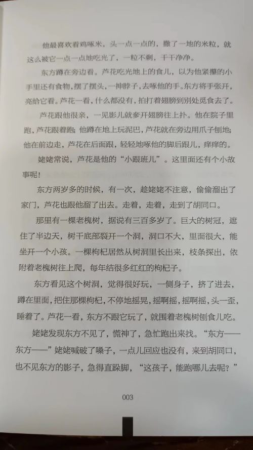 原创长篇小说。少年东方家养了一只下蛋的老母鸡——芦花,这只芦花鸡在家里发挥着极其重要的作用。全家靠它下蛋、孵小鸡卖钱,贴补家用,东方和芦花鸡之间有着深厚的感情。故事围绕爱与成长,人与动物的和谐相处,以诗化的语言,讲述了一个动人的故事。这个故事告诉我们:有一种童年,它的快乐很简单,却不乏深刻与美丽、苦难与诗意。这又是一个关于生命关怀的故事,告诉孩子:生命的相互呵护,相互敬畏,是人性最美的底色。