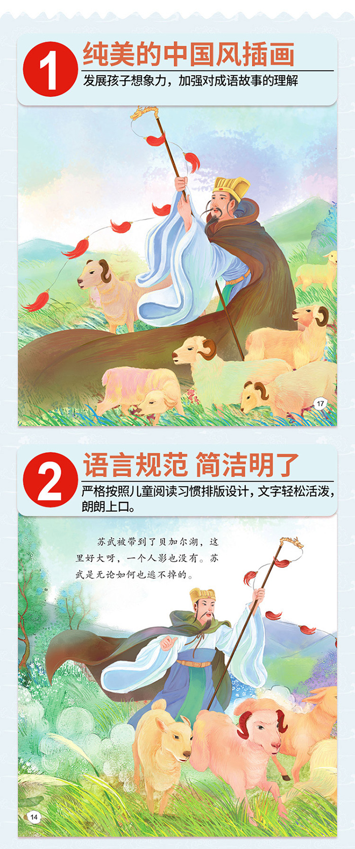 本书为幼儿绘本系列之一,苏武为了帮助祖国完成任务去了其他国家,结果赶上内乱,被扣留下来了。当对方用各种手段想要苏武留下来的时候,苏武毅然决然地拒绝了,他足足放了19年羊,才终于回到自己的国家。为了国家和民族他誓死不屈服,这种精神令我们感动!