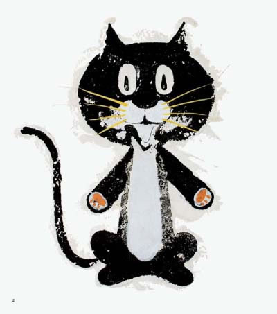 小风一个人,笑眯眯地坐着,这时,小猫来了,它“喵喵”叫着,学小风的样子坐下了。后来,又来了小狗、大象,他们笑眯眯地坐成了一排……