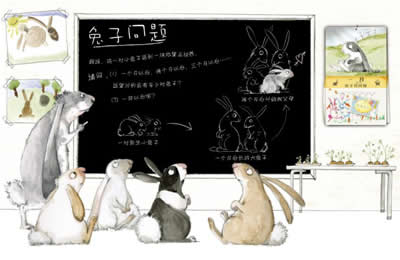 这个故事源自13世纪宫廷数学家裴波那契提出的一道数学题,解答了1+1等于288这样一个命题。整本书以兔子家庭年历的形式,按月份记载了兔子们的喜怒哀乐。书里的兔宝宝诞生纪念册、红萝卜食谱,兔毛衣编织手册等等,让读者应接不暇,惊喜连连。最后一个蹦出来的大立体页里,在很小的空间里,展示了满满当当288只兔子,使读者的惊喜度达到峰值。
