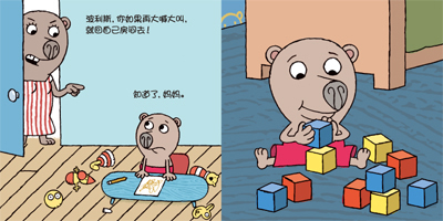 小孩子属于无意识学习的阶段,所以教条的、讲道理的书孩子不喜欢,大人觉得再有用,孩子都不能真正吸收为自己的东西。而《小猪波利斯》这套书完全以孩子的真实生活为故事原型,故事里孩子总是会碰到这样那样的问题,他们用自己的办法解决问题,获得快乐。孩子很容易记住这些搞笑的、好玩的故事,获得故事带给他们的最初的乐趣。当他们在自己的生活中遇到类似的情况并能如故事中的波利斯一样想办法解决问题时,他就能获得故事里传达的深层能量。