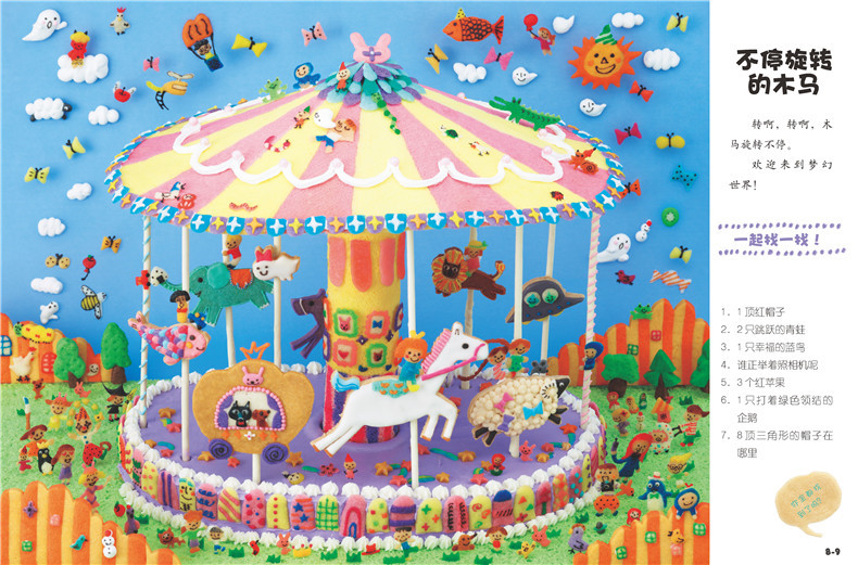 这是一套畅销日本的幼儿专注力训练游戏书。每页的大场景都是由好吃的点心、好玩的黏土、木头、纸张等材料制作并拍摄而成的,形象逼真、可爱,图片清晰、富有立体感,光看着就觉得好玩儿!每一页都有故事线索和寻找目标,不仅挑战孩子的观察力、专注力和耐力,还能创编不同的故事情节,激发孩子的想象力和创造力呢!