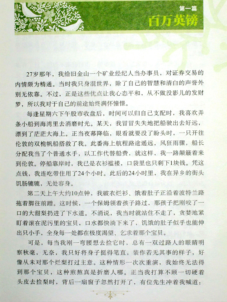 《名家推荐世界名著:百万英镑(畅销升级版)》收集了马克·吐温创作的20余篇幽默小说,以负盛名的《百万英镑》命名。马克·吐温的幽默有三个层次:一层是“开怀的笑”,如《卡拉维拉斯县驰名的跳蛙》;第二层是“会心的笑”,如《百万英镑》、《竞选州长》;第三层是“含泪的笑”,如《败坏了赫德莱堡的人》。