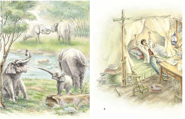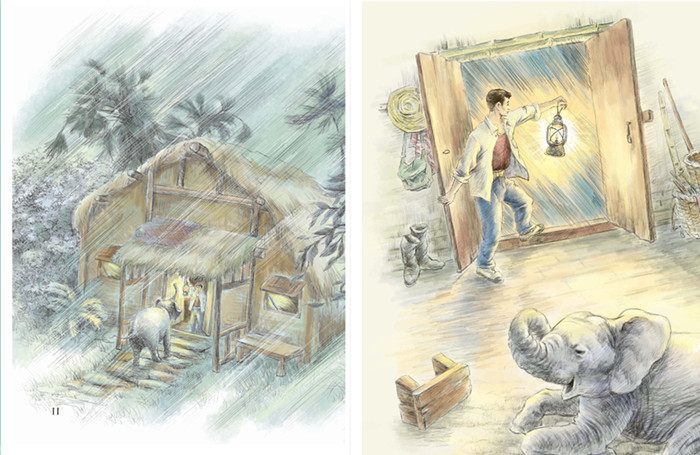砰,木门被重重推开了。夹着雨雾的风迎面扑来,湿漉漉的,凉冰冰的,冷得我鼻子发痒,张嘴就想打喷嚏。“啊——”我刚张大嘴,还没来得及把喷嚏打出来,便吓得魂飞魄散,已蹿到鼻孔的喷嚏被吓得缩了回去。在马灯的照耀下,我看见门口站着一头象,准确地说,是站着一头和我差不多高的约两岁龄的小象。