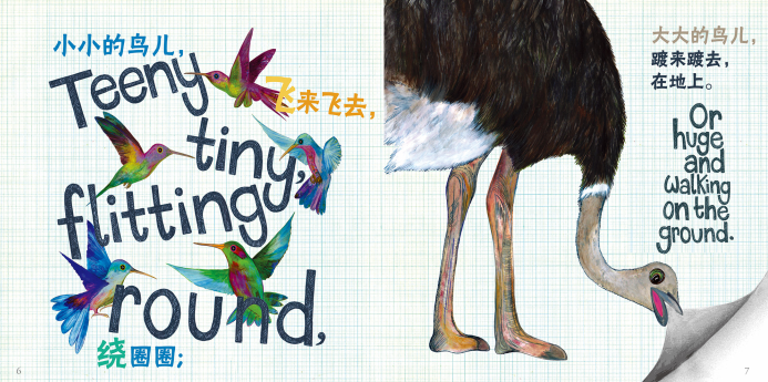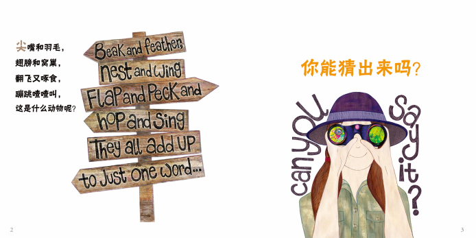 ★中英双语,和谐押韵朗朗上口的鸟类认知童谣,带孩子领会中英双语语言美,韵律美。