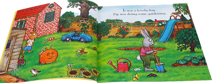 Pip and Posy are friends (most of the time!) in the newest title in this series about the dramas of toddler life.It's a rainy day, so Posy decides to stay at home and do some baking. With the cupcakes safely in the oven, she settles down to lick the bowl when a large, blue, furry paw appears at her window. A moment later, a monster walks in- oh, no! But something about the monster looks familiar. . . .