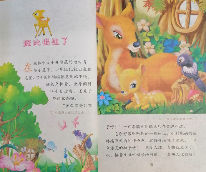《小鹿斑比》讲述的是一只小鹿的成长故事,是一部关于爱、成长与生命的童话。它讲述了一只离不开妈妈的小鹿斑比成长为森林里尊贵的鹿王的神奇经历。这是一个充满了爱与保护、温馨与传奇的动物故事,作者借助动物的形象,以拟人化的手法,栩栩如生地反映了人类与大自然、与动物和谐相处以及尊重生命、向往幸福、希冀和平的美好愿望。在本书中,森林就像一个充满温情和诗意的大家庭,每一个动物都很有性格:顽皮的兔子、爱捣蛋的灰林鸟、机敏又睿智的鹿王、聪慧善良而又坚强的小鹿斑比…… 它们同人类一样,有喜悦有恐惧,热爱生活,追求幸福,向往自由,渴望和平。