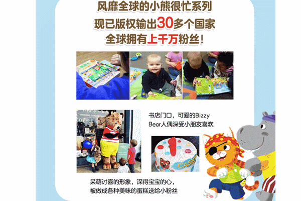 来自英国的Bizzy Bear——《小熊很忙》系列,已畅销全球10,000,000多册,占据着各大儿童图书排行榜,中英双语版销量超4,000,000册