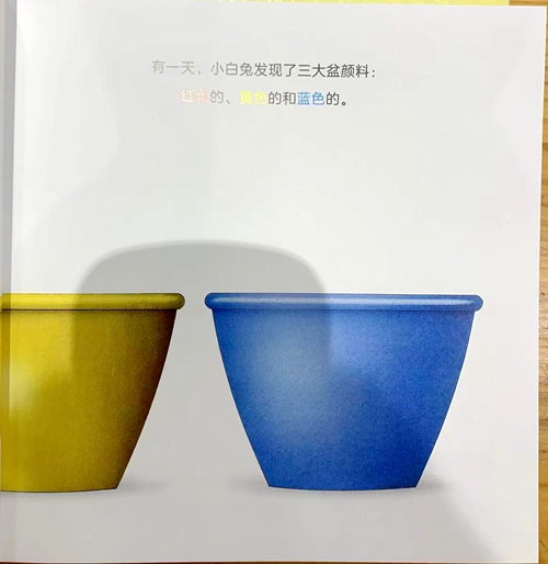 小白兔发现了3盆颜料,和它一起探索颜色的魔力吧!