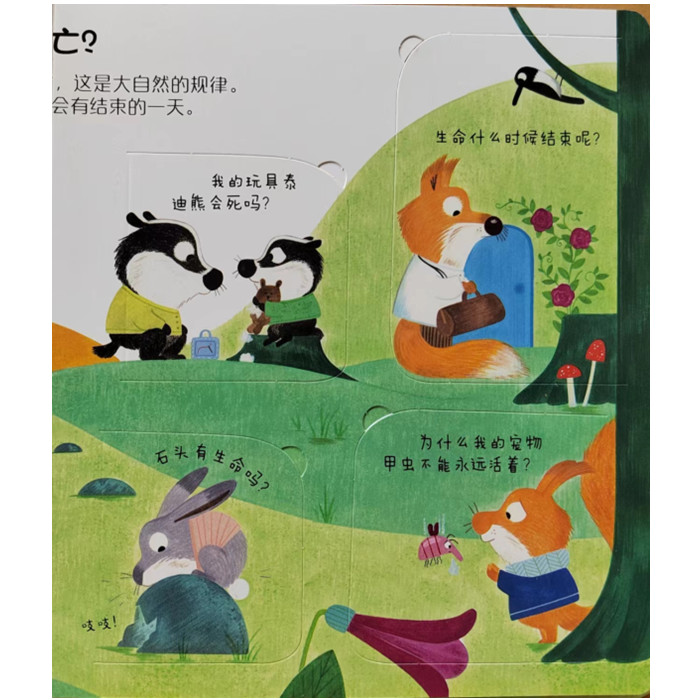 随着孩子的情绪和生活经历逐渐丰富起来,“死亡”这个沉重而严肃的词可能不经意间就会闯入他们的小世界。死亡是什么?为什么会有死亡?死亡是一件不能和别人诉说的事吗?当亲爱的人离去后,我们可以尽情哭喊释放悲伤吗?要怎么做才能让自己不难么难过?这本书借助可爱的动物形象,以温和的、诚挚的语言为孩子剥开“死亡”神秘的外衣,带着他们感知生命应该具有的意义。