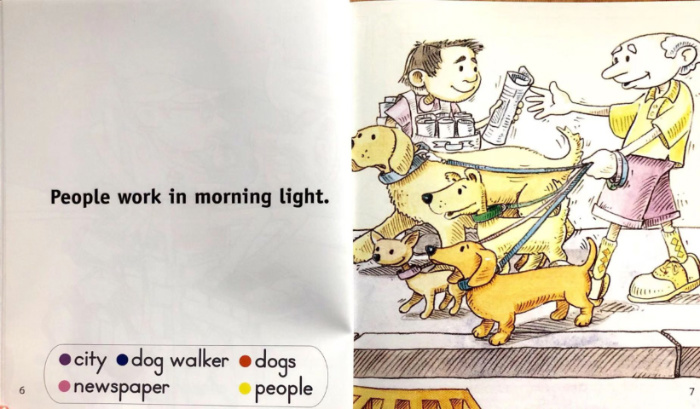 彩红点点标注的词汇,在图片里可以一一对应。根据相同点读发音,找到配对的词汇图像。边点变Talking跟读,看到字形时,迅速联想图片,完成记忆。