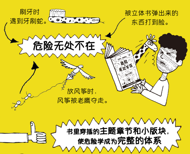 书中设置了很多有趣章节,如“避免被愤怒和强攻击性动物的建议”“生活避险十大诀窍”“危险学特殊用语”等,使“危险学”自成体系。关于“危险学”的讲述与故事线索巧妙地融合在一起,故事情节曲折有悬念,节奏感把握得非常好。