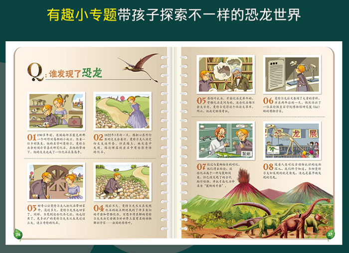 《不一样的恐龙》从恐龙的起源、发展、灭绝谈起,将恐龙具体地分为植食性恐龙与肉食性恐龙两大类,将一幅幅史前时代的画面展示在孩子们面前,带孩子去探索曾漫步于陆地上、遨游于深海里的那些恐龙,开始了一段了解古生物的惊叹之旅。