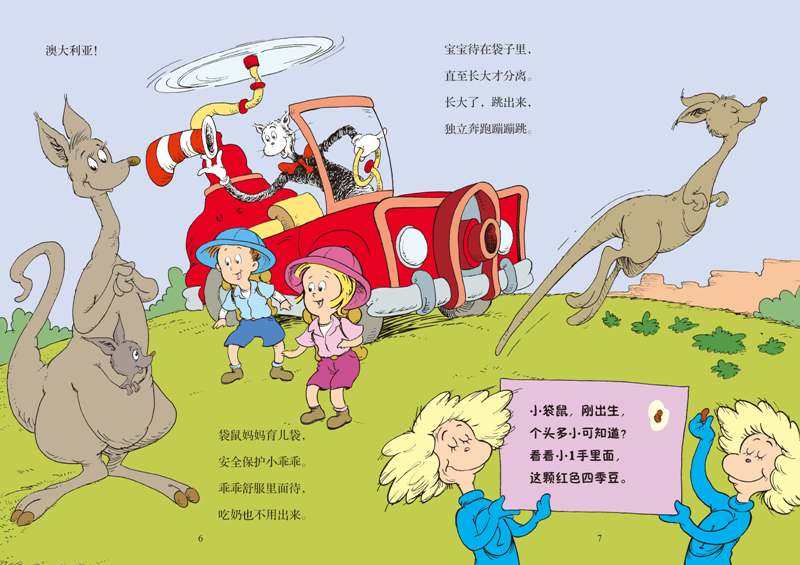 1998年,兰登书屋延续美国最受欢迎的儿童文学大师——苏斯博士的一贯风格,设计出一套旨在引导儿童在阅读中探索世界、学习知识的《苏斯博士:戴帽子的猫科普图书馆》系列。该系列图书主要向学龄前儿童介绍我们生活的世界内的基本概念,将知识性和趣味性融为一体,图文并茂,通俗易懂,能帮助儿童开阔眼界,增长知识,为将来的学习打下良好的基础。