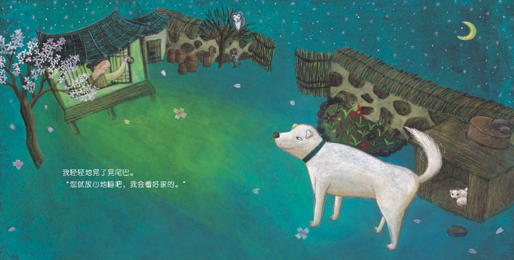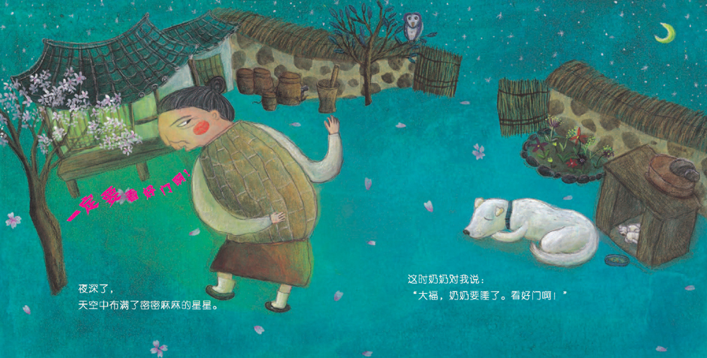 深了,天空中布满了密密麻麻的星星。这时奶奶对我说:“大福,奶奶要睡了。看好门啊!”我轻轻地晃了晃尾巴。“您就放心地睡吧,我会看好家的。”……