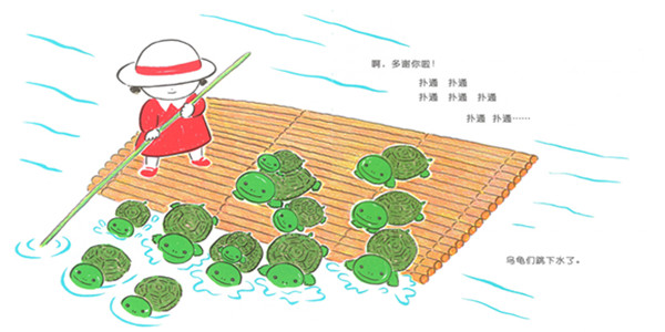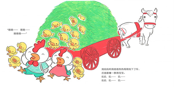 (4)充满韵律的反复的拟声词贯穿全书,让孩子觉得故事有趣又好念;