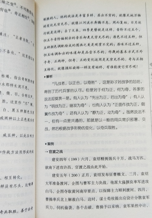 《孙子兵法》通过总结战争经验,提出了许多著名的军事命题和具有普遍意义的用兵原则,共十三篇。《三十六计》共六章:胜战计、敌战计、攻战计、混战计、并战计、败战计。本书将二者合而为一,书中有原典旨要、古文今译等多个版块,同时列举了大量战例。
