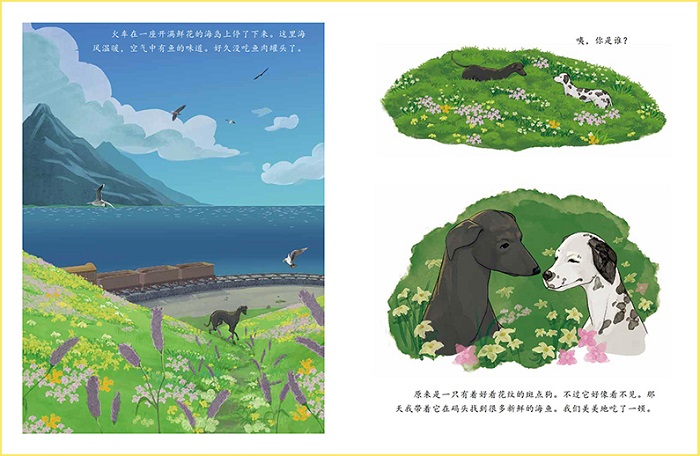 故事的主角“我”是一只漂亮的灵缇犬。我以前有一个温暖的家,和主人生活地非常幸福。可是有一次因为没带牵引绳,我和主人走失了。在找主人的时候,我发生了意外而失去了一条腿。从此,我变成了一只没有家、没有人疼爱的流浪狗。我去了很多地方,过着到处流浪的生活。但渐渐地,我不再悲伤,开始用我的三条腿用力的奔跑、跳跃。一次,我搭了火车到了一个开满鲜花的海岛,在那里遇到一只双目失明但却非常美丽的斑点狗,我又重新拥有了一个家,我们彼此依靠,一起开始了新的旅行。