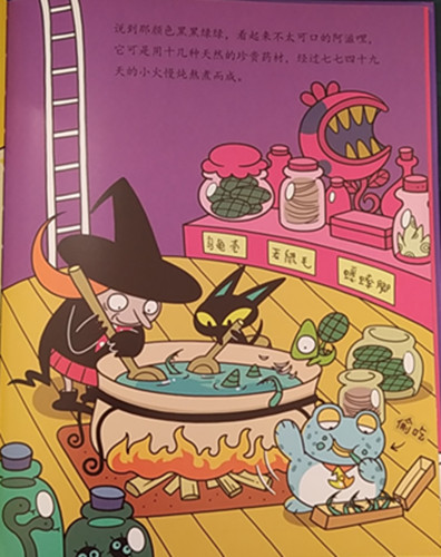 所有的巫婆都害怕小孩,因为他们会无休无止地吵闹。巫婆阿丽也一样,但是她却养了三只小宠物。黑猫巴特是阿丽小时候的生日礼物,癞蛤蟆乌拉拉是阿丽中学毕业的纪念物,蜥蜴喳喳是阿丽不久前收养的小可怜。三个小宠物一见面就吵得不可开交,整天打打闹闹,家里那真是鸡飞狗跳。日子一天天鸡飞狗跳地过着,有时候出离愤怒的阿丽会夺门而出,出去躲躲清闲。有一天,阿丽实在忍无可忍,就念了一句咒语,将三个小家伙变成了雕像。三个成天打闹的小家伙,一动不动。第一天,阿丽终于松了口气;第二天,阿丽心情大好;第三天,阿丽觉得实在太轻松了。但是第四天开始,阿丽感觉有点空虚。此后好几天,感觉越来越糟糕……结果会怎么样呢?