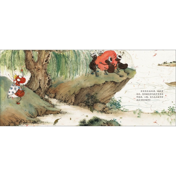 感恩朋友:当你遇到困难时,得到他人的帮助。而帮助过你的人没有留下任何信息,你该怎么办?故事描述了主人翁蚂蚁公主安安,在搬运食物时不慎跌入湖中,当时正遇起风,风卷湖水,扑向安安。危机时刻,从空中飘来一支羽毛,它像大船一样,救起了安安。当安安想感谢大船时,大船早已飞去远方……安安得到大船的拯救,获得了生命,但心中拥有一颗感恩的心。为寻找大船,她和伙伴们一边工作,一边寻找大船,时时想着回报大船的救命之恩。一次在山上闻到了与搭救她的大船的味道,她与伙伴们闻着味道寻找。当看到曾经救过安安生命的是一只鸟儿,它受了伤,趴在树枝上奄奄一息时,安安和伙伴们一起救了鸟儿。他们的互助友爱,慷慨施救对方的精神值得赞美。今日的重逢,他们都拥抱着着彼此“感恩”的心。