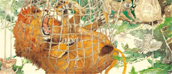 一只小老鼠意外掉到睡着的狮子身上。狮子被打扰后,很气愤抓起小老鼠,准备一口吃掉。在小老鼠的苦苦哀求下,狮子竟然放走了小老鼠。不久,狮子落入猎人的圈套,小老鼠出现了,真的救了狮子的命。