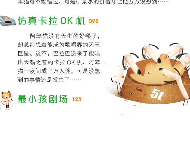 本书为冰波老师的代表作《阿笨猫系列童话故事》的第三本,其中涵盖了六篇令人捧腹大笑的小故事,如克拉狗和空气兔、仿真卡拉OK机等,故事主线为主人公阿笨猫开了一家杂货店,他总是会从外星小贩巴拉拉手里买各种有趣的东西,但是每次都会陷入巴拉拉的圈套里。