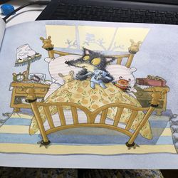 What's the Time, Mr Wolf?《老狼老狼几点了》是英国畅销童书作家戴比·葛莉欧利受民间幼儿园传统游戏“老狼,老狼,几点了?”启发而创作的图画书。不同于其他故事中永远狰狞可怕的老狼,也不同于游戏中十二点钟就要准时开始抓人的老狼,《老狼老狼几点了》中的老狼先生和蔼、友善,是二十四只小黑鸟、三只小猪和小红帽的好朋友。他讲究生活情趣,作息十分规律,小动物们都会向他打听时间,甚至嘻嘻哈哈地捉弄他,而老狼先生却始终平和以对。故事结尾,老狼先生为前来参加生日聚会的朋友们辛苦跋涉买蛋糕,迎接他的则是大家为他精心准备的无数小惊喜,欢乐温馨的场面极具意义。