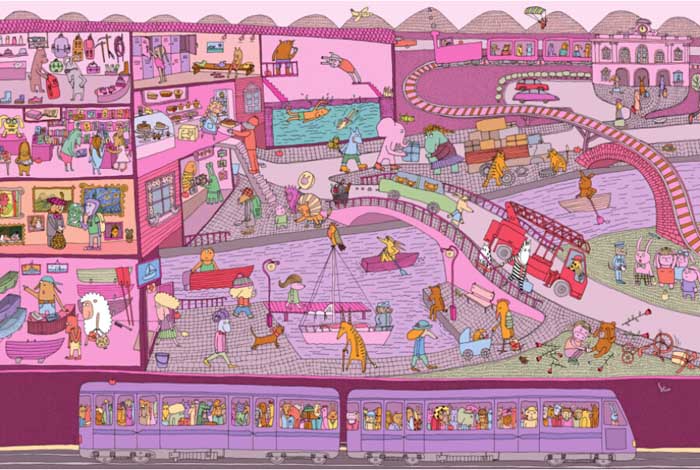《MAMOKO妈妈看!》像一幅璀璨浩瀚、波诡云谲的“云图”其中包涵有无数的人物和故事而它,却是一套只字皆无的“无字书”。