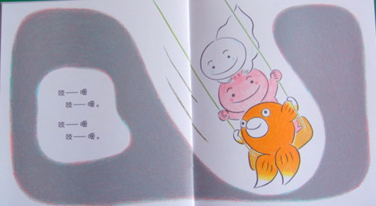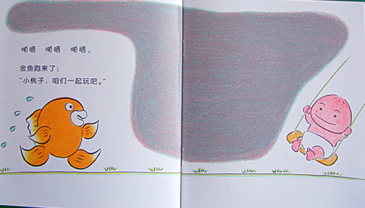 画面简洁是这本图画书的另外一个特点。作者在图画书中大量使用了露白的手段,每一个画面中,只有核心的人物和核心情节,所有的路、山、沟仅仅采用了几根线条来勾勒。这样简洁的画面容易将孩子的注意力集中在桃子的行动上。在和孩子一起阅读这本图画书的过程中,成人应当鼓励孩子仔细观察画面的细节(如小桃子的面部表情从“淡定、严肃”到“环西、高兴”的变化过程等),从这些细节中把握故事发生、发展的情节变化,体会小桃子的性格特征(如“坚持”、“勇敢”等)。