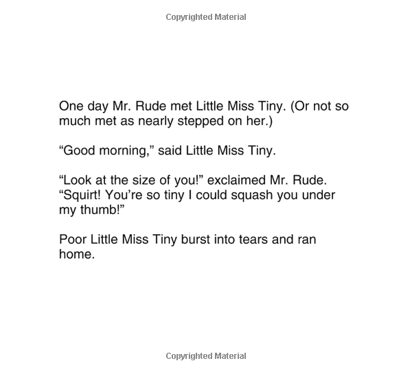 此书是著名儿童作家哈格里夫斯的作品《奇先生妙小姐》,经典的儿童图画书,可以说是经久不衰,书中每页只有短短几句话,插画则十分逗趣,每个动画人物都是圆圆的,每个动画人物都有自己的性格,很受小读者的喜爱。