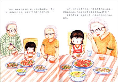 《蔬菜的秘密》:挑食和偏食是儿童时期最常见的不良饮食习惯,这在某种程度上直接影响了孩子的成长,而且儿童时期的饮食习惯一旦养成,则可持续到成年期,对孩子一生健康都有直接影响。书中有对菜园里各种蔬菜的写实描绘,让孩子直观地了解蔬菜的生长环境和生长过程,特别对生活在城市的孩子来说,能极大丰富了他们的生活经验,让他们认识到每种食物对我们的身体都有好处,养成不挑食,不偏食的好习惯。