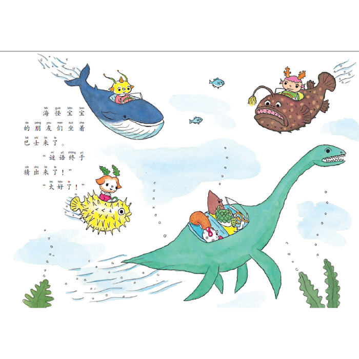 甜甜圈甜大哥,滚起来比子弹头列车还要快;大福饼福小妹,特别聪明,擅长猜谜语;烤红薯薯二哥,是个力大无穷的大力士。他们是爱冒险的嘭嘭嘭三人组。 嘭嘭嘭三人组去冒险,猫头鹰城堡变成了大妖怪;肚脐岛上的蛤蟆怪念咒语,天上下起带刺的毛栗子;在茫茫大海中,他们被海胆寿司吞了进去……所有这些,都难不倒智慧勇敢的嘭嘭嘭三人组。 深见春夫自写自画,塑造了三个诙谐可爱的人物形象,以不羁的想象,将探索、团结、乐观的精神融入冒险故事,让小读者在阅读中收获快乐、勇气和力量。 《企鹅巴士游大海》 空地上突然冒出一座海螺形状的大楼,嘭嘭嘭三人组好奇地走进去,没想到里边是一片汪洋大海。他们开着企鹅巴士旅行,被章鱼缠住,还被海胆寿司吸了进去。后,他们居然和海怪宝宝一起畅游海中的森林……