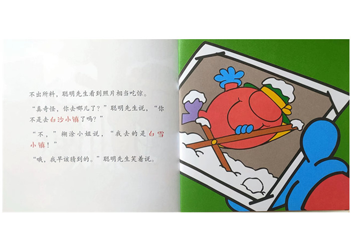 糊涂小姐经常把所有的事情都搞得乱七八糟的。有一次,她去度假时,她的朋友们决定帮助她确保所有的事都不出错,可糊涂小姐还是出了差错,因为她下错了车站,把海洋小镇看成了颤抖小镇,因此她只能在颤抖小镇度假了。