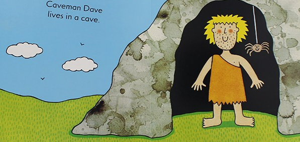 请搜小程序《老约翰绘本馆海淀西》,观看视频名家Nick Sharratt这次为小朋友们带来一个新朋友Brave Dave,勇敢的戴夫!依旧是Nick熟悉的简单画风,史前时代的洞穴人戴夫是一个不修边幅的人,身上也闻起来臭臭的。但这并不影响勇敢的戴夫和各类动物们成为好伙伴。文字上来说,这是一本韵律性极强的绘本,读起来朗朗上口。每一页的句尾单词都巧妙的用到了“-ave”的后缀词,便于朗读且有助于记忆。